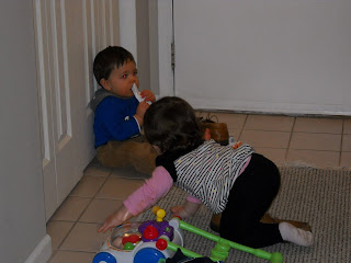 Macie still couldn't really care less that there is a baby in the house. She hardly ever seems to notice her. Once in a great while she will look in her direction, but I think it's to scan and make sure that Emma isn't using any of her things.